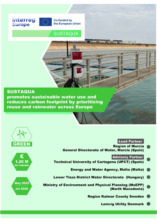 El proyecto europeo Sustaqua es una iniciativa cofinanciada por el programa Interreg Europe cuyo objetivo es mejorar las políticas regionales para promover el uso sostenible, eficiente y de bajo consumo energético de los recursos hídricos. Tiene una duración de cuatro años y aspira a ser un punto de inflexión para las políticas del agua en Europa, demostrando que el uso inteligente y sostenible del recurso hídrico es posible.